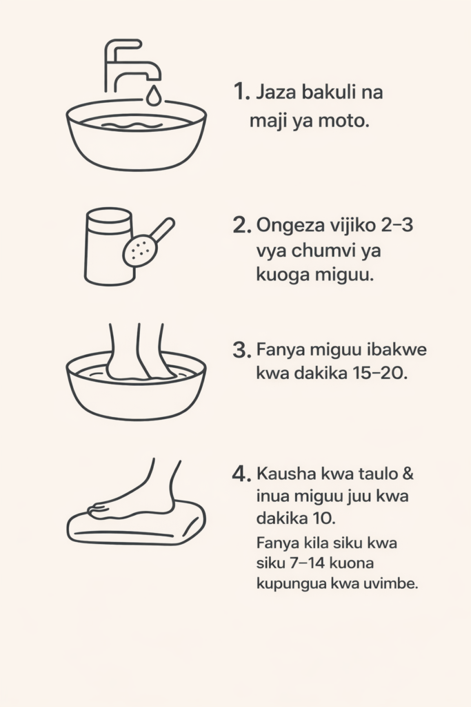 • Fanya hivi kila siku kwa siku 7–14 ili kuona kupungua kwa uvimbe.